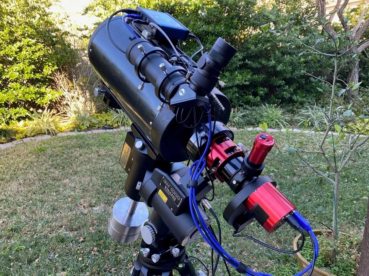 So, as you can see by the photo, I purchased a10Micron GM1000 HPSmount. I researched a bunch, over oncloudynights.com. I strongly considered a bunch of different options including an Astrophysics Mach2 (which had an extremely long wait list), Paramount MyT, as well as the GM1000. Ed fromDeep Space Productscontacted me after reading one of my posts, and after answering a lot of my questions, swayed me to go with the GM1000. Ed shipped it out and in a matter of days I had it set up and running. Unfortunately as luck would have it in this hobby, I started to experience some strange electrical problems with the mount only when the DEC motor was operating. This is very unusual to have any issues in these mounts as they’re throughly tested before leaving the manufacturing plant. The problem I experienced only came about during temperature drops which explained why it wasn’t caught in testing. Through Ed’s direct support (late night phone calls) he walked me through a bunch of trouble shooting, and I eventually shipped the mount head back to him at no charge to me. He reseated all the electrical plugs (that were internal) and the problem disappeared for him. Just to be sure they replaced the DEC motor/encoder assembly. Ed tested for another week, and it seemed all clear, so he shipped it back to me. It’s been working flawlessly ever since.