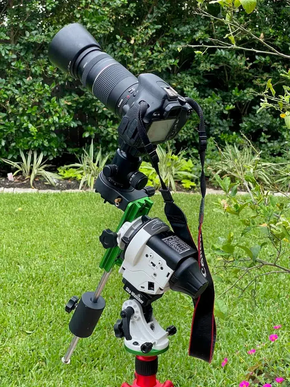 The forecast gave me one truly clear night, and several partially cloudy nights. So I had time to play around before the first clear night. On my first night, I set up the sky tracker and pointed it towards Polaris to polar align. Polar alignment was a snap with the built in polar scope. I usedPolar Scope Align Profor the iPhone to find where Polaris should appear in the polar scope. Then dialed it in with the manual align controls on the Star Adventurer.