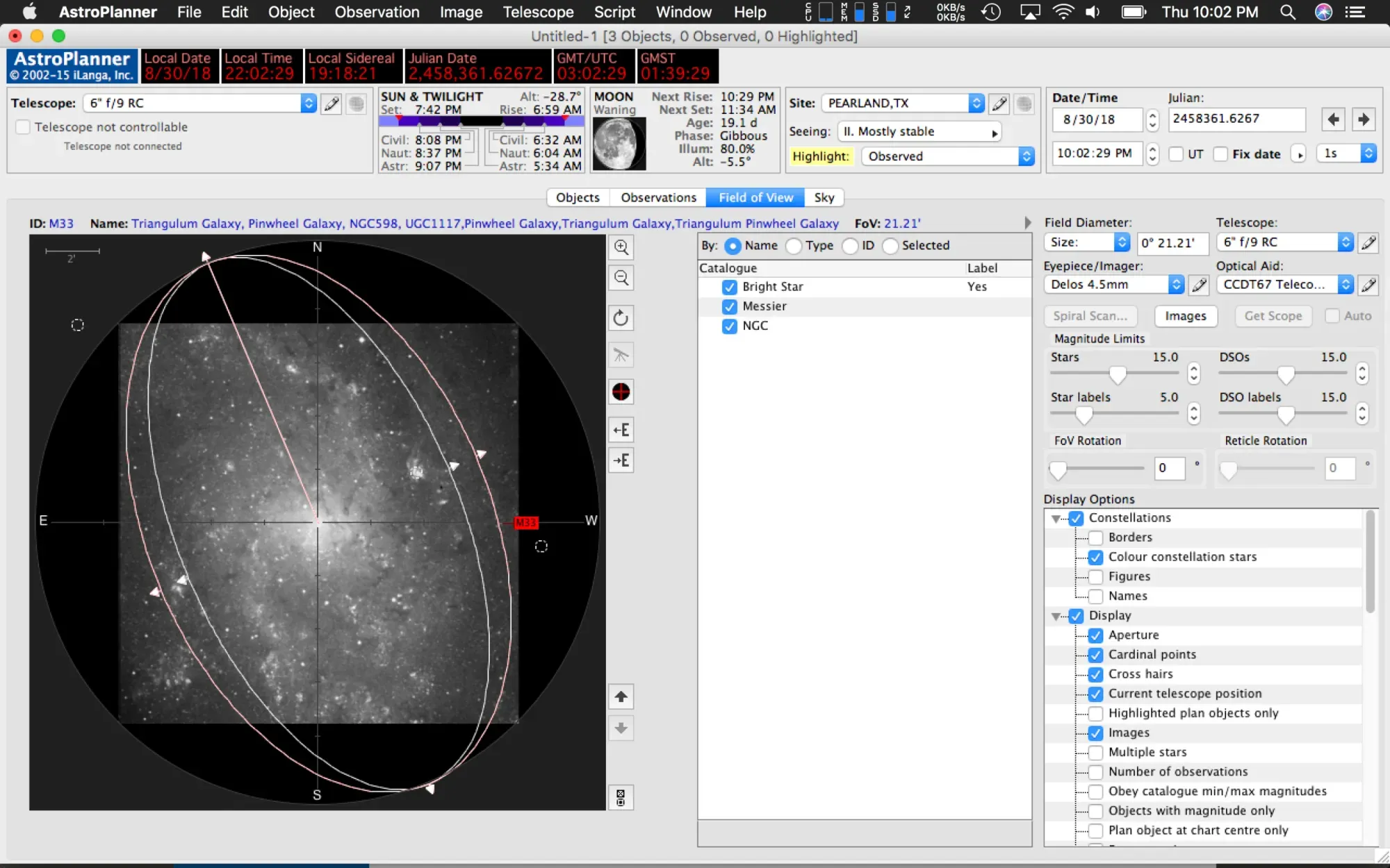Field of view in AstroPlanner