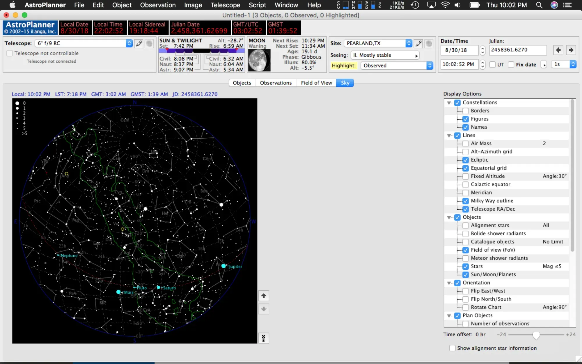 The Sky view in AstroPlanner