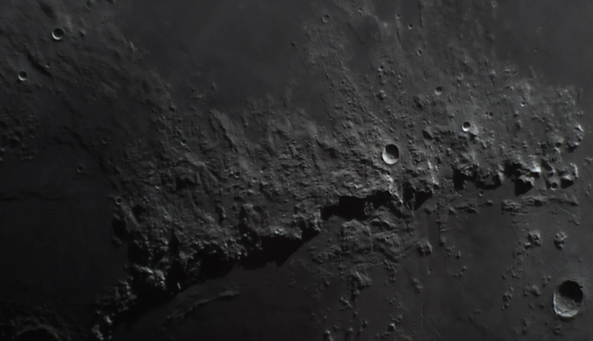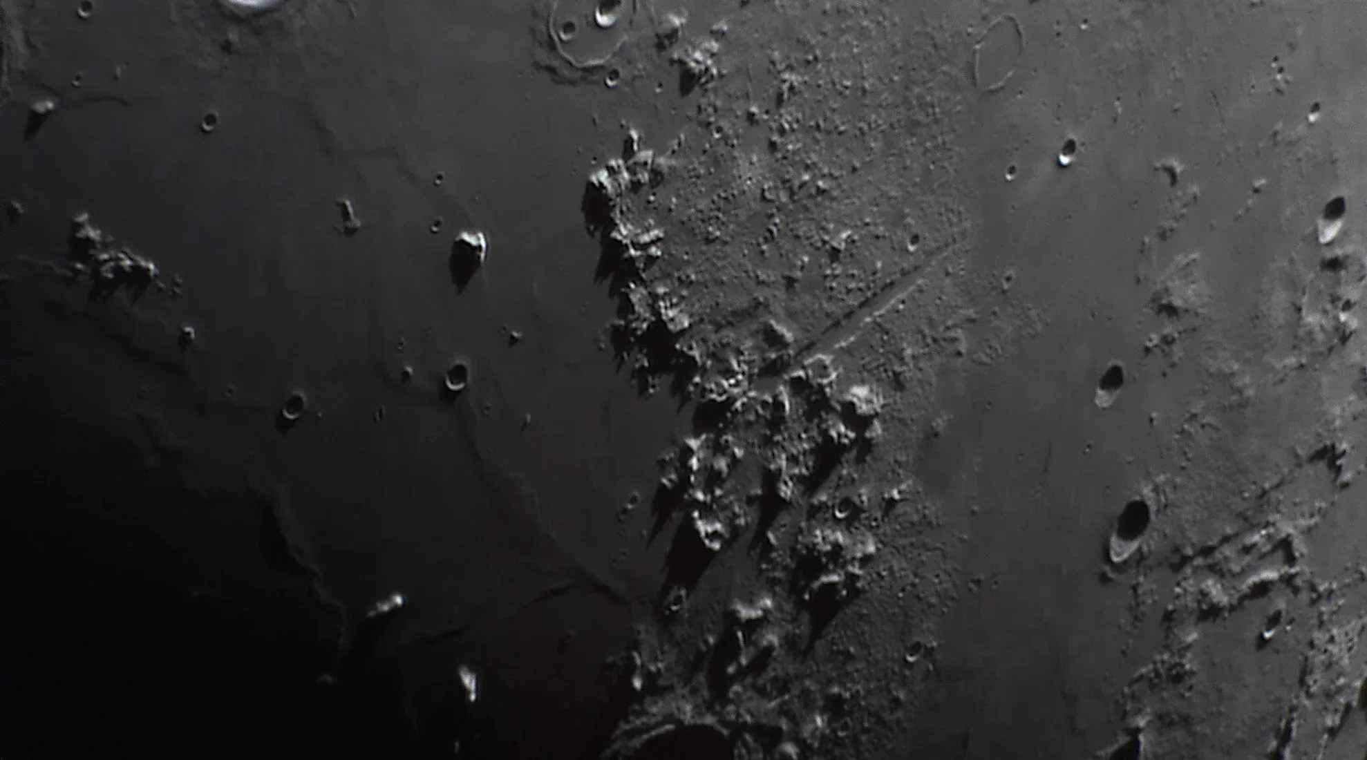 I set my frame rate down into the low 20 MS and gain between 0-200 until I found the right balance of speed and contrast. On the moon it’s easy to blow out parts of the images (like highlights of light on craters), so I keep the histogram towards the left (dark) half to ensure I don’t wash out any parts of the image. I know I can always go back in post processing to brighten up the mid-tones of my images if I need to. I shot a few images at the native focal length of the telescope (1250mm), then put in a Tele Vue PowerMate 2.5x to more than double the focal length to a whopping 3125mm! This also more than doubles the F ratio from F10 to F25, and requires a refocus and changes to the gain and capture speed to reflect the slower speed of the scopes light gathering abilities at F25.