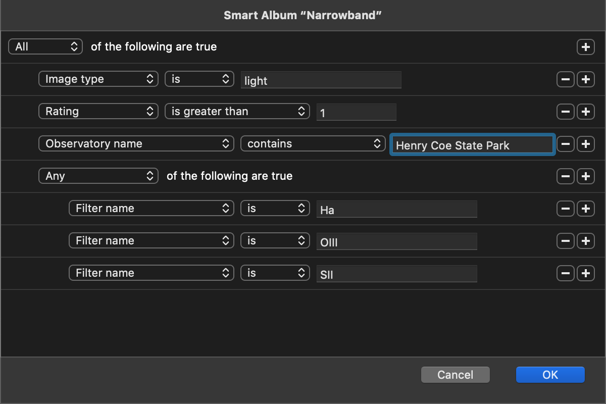 - Observer, camera and telescope name smart album criteria not behaving correctly.