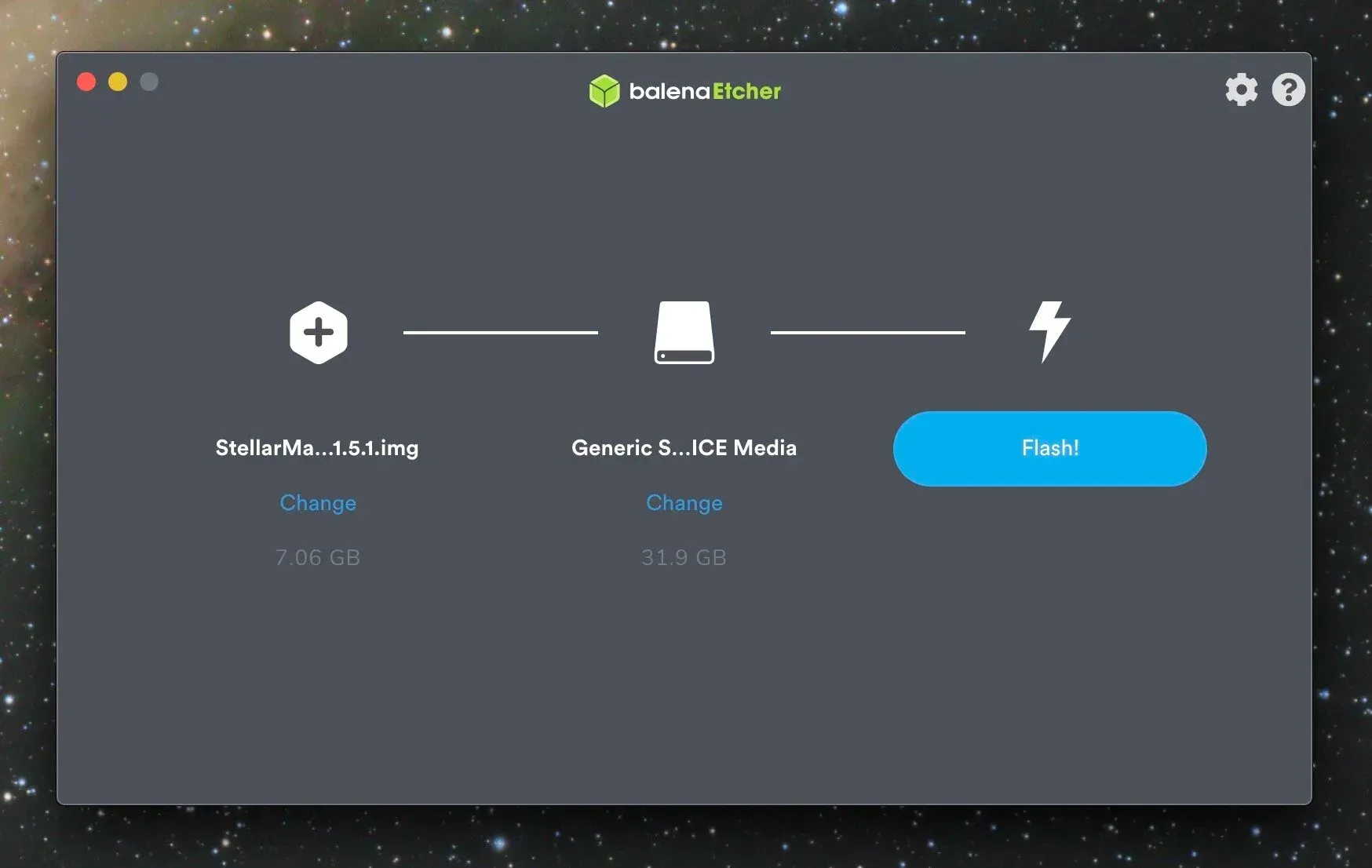If you’ve gone the route of purchasing your own Raspberry Pi, and need to install the Stellarmate OS or Astroberry Server, you’ll insert the MicroSD card into your computer directly if it has a slot, or with an adapter if you don’t have one. You’ll need to downloadbalenaEtcherin order to copy the Stellarmate OS image over to your card. Download the image of the OS to your computer, and download balenaEtcher as well. Run balenaEtcher and select the downloaded StellarMate OS image (or Astroberry Server image), select your SD card as the target, and then select Flash.