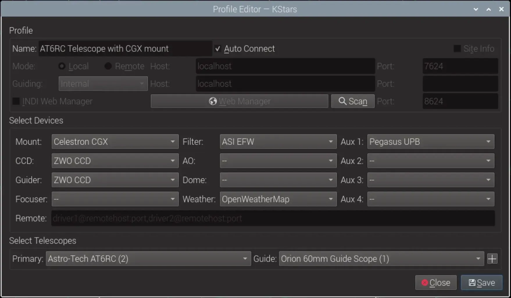Now to configure KStars/EKOS location and equipment profile so that you can image with your Raspberry Pi unit over VNC from the comfort of your home.