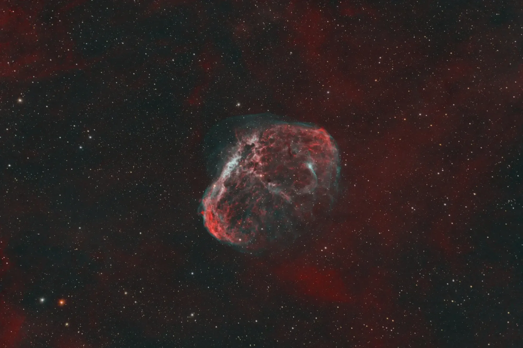 The second night, I shot the Crescent nebula. I processed it as HOO here, and in my gallery I added SII to the mix for an SHO colored pallet. This image was right at 8 hours.