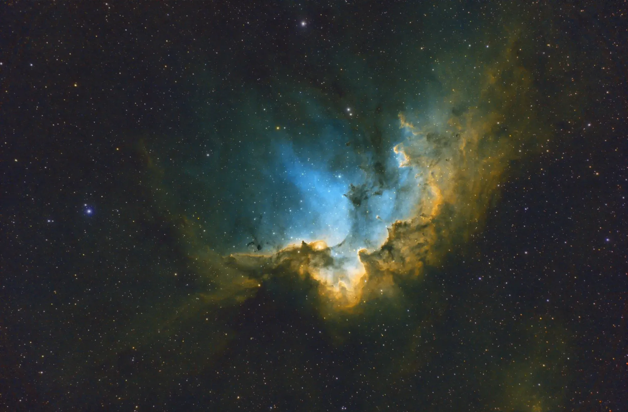 My first night out with the camera, I shot the Wizard nebula. I did not get a lot of time on the subject, at just 6.9 hours. So as I started to process the images, I was afraid the final result wouldn’t be that good. On myZWO ASI1600MM-Pro, I’ve been used to imaging narrowband targets at least 10 hours, and sometimes a lot more. This is where that quantum efficiency comes into play. At only 7 hours, this was my first image result.